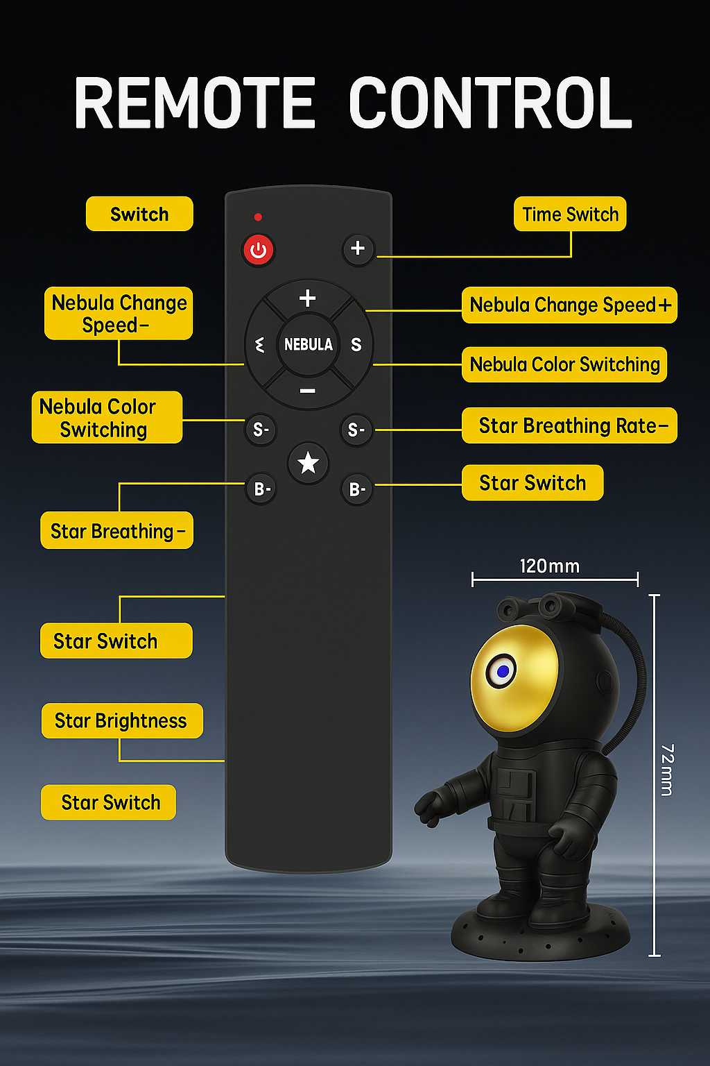 Bring the serene beauty of the stars right into your room with this adorable and functional astronaut projector. Designed to soothe, inspire, and elevate your space with an immersive galaxy experience.